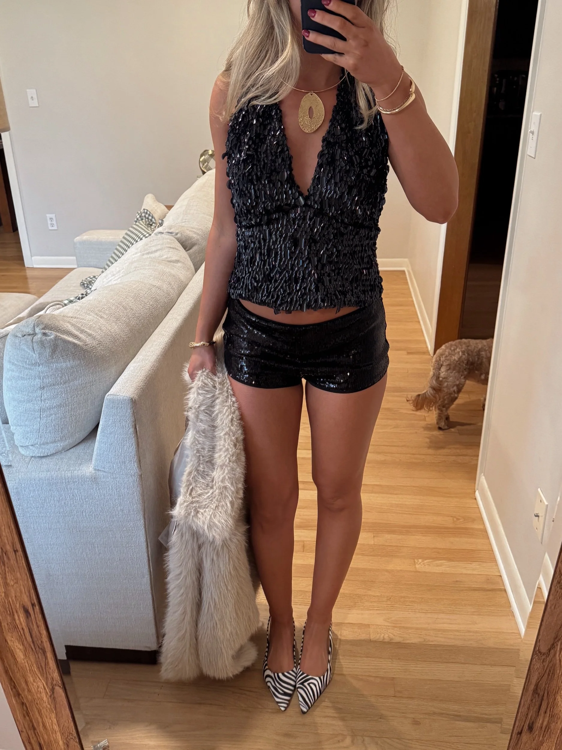 black halter tank with sequins