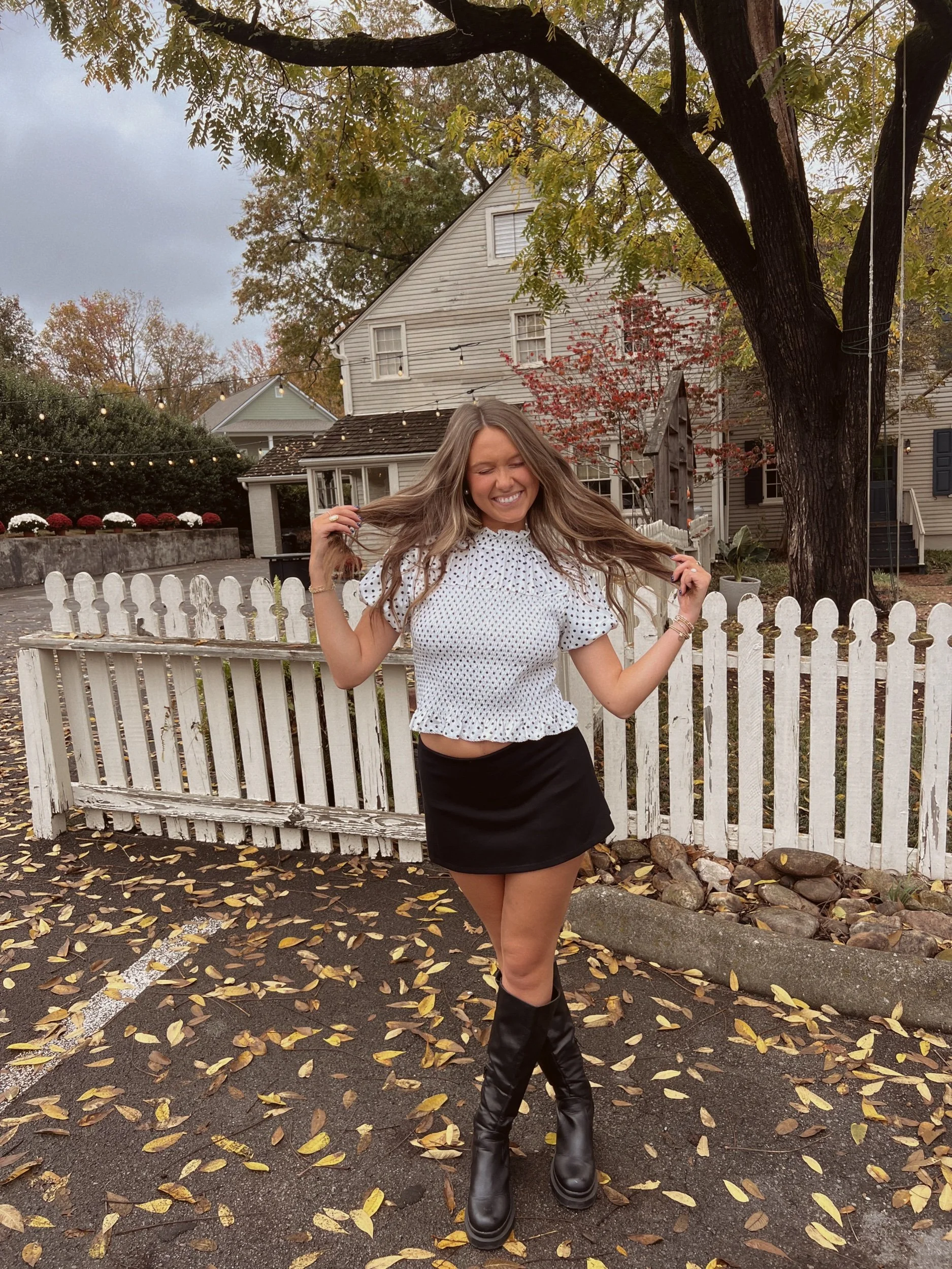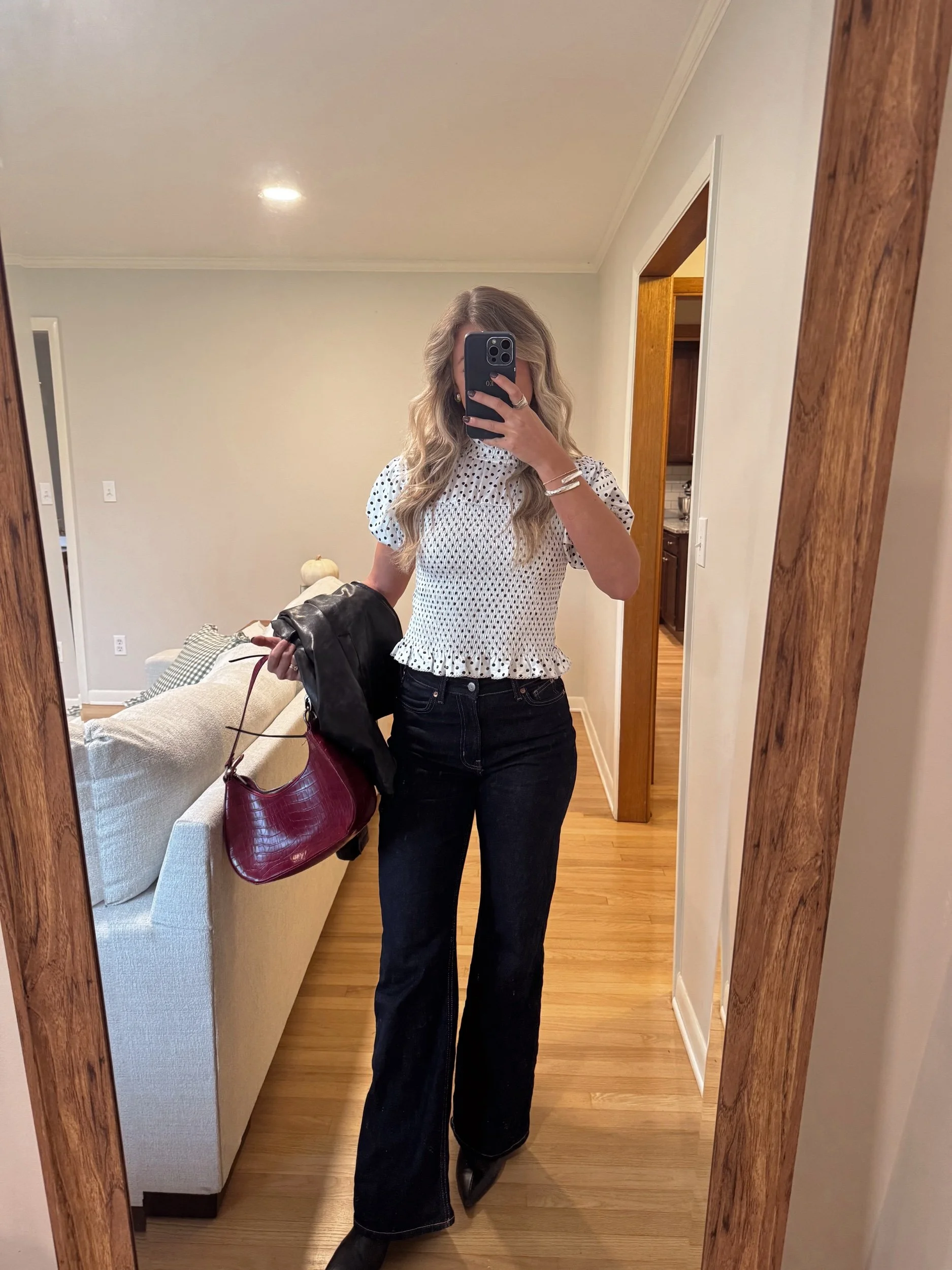 - polka dot smocked top
